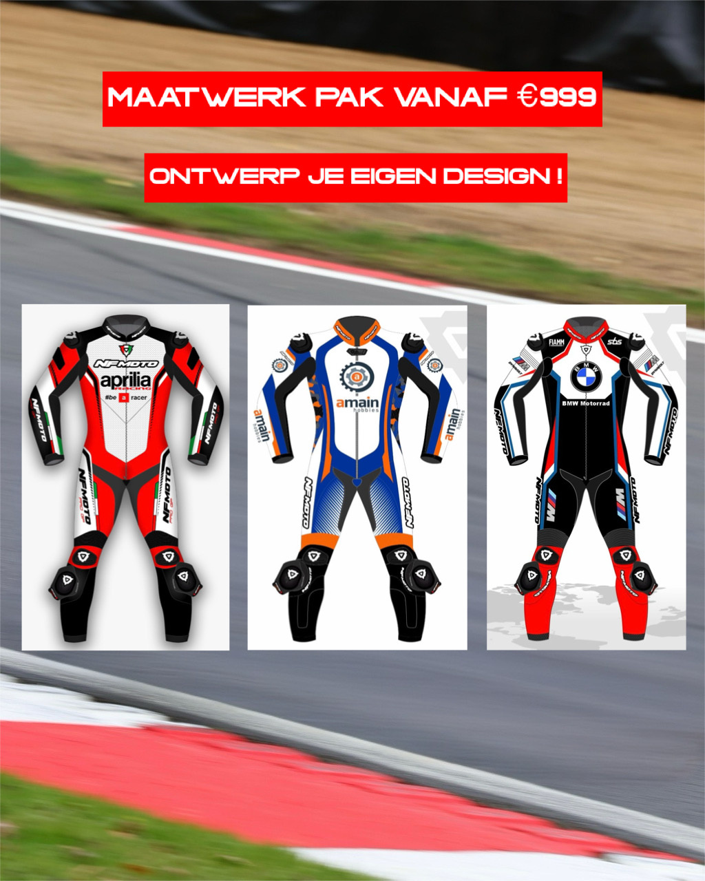 Waarom op maat gemaakte motorkleding? Elke motorrijder is anders en past niet altijd in een standaard motorpak. Daarom bieden wij op maat gemaakte motorkleding van de merken NFmoto en Rewin aan.